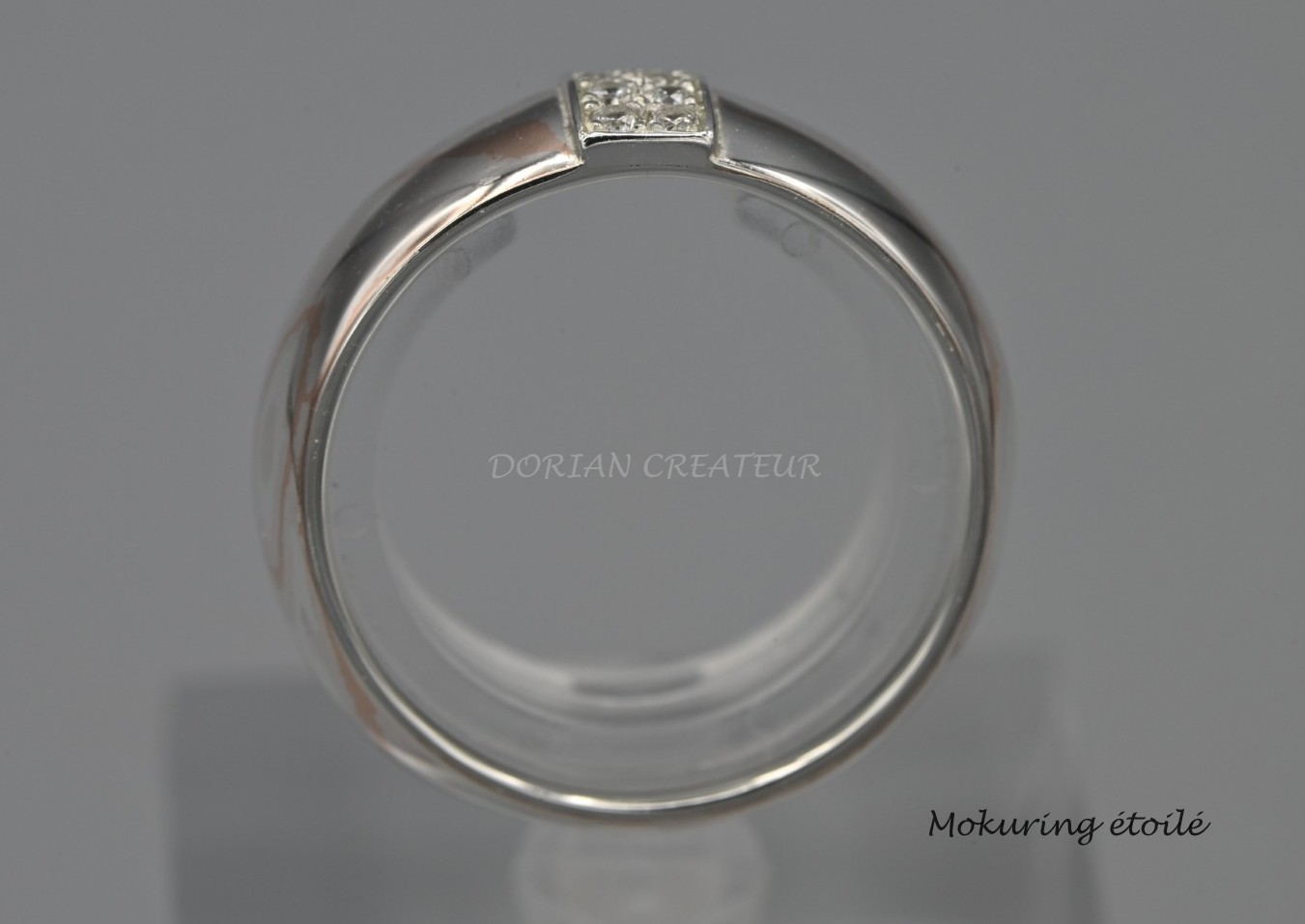 Bague en mokume gane, argent 925‰ et cuivr, oxydes de zirconium